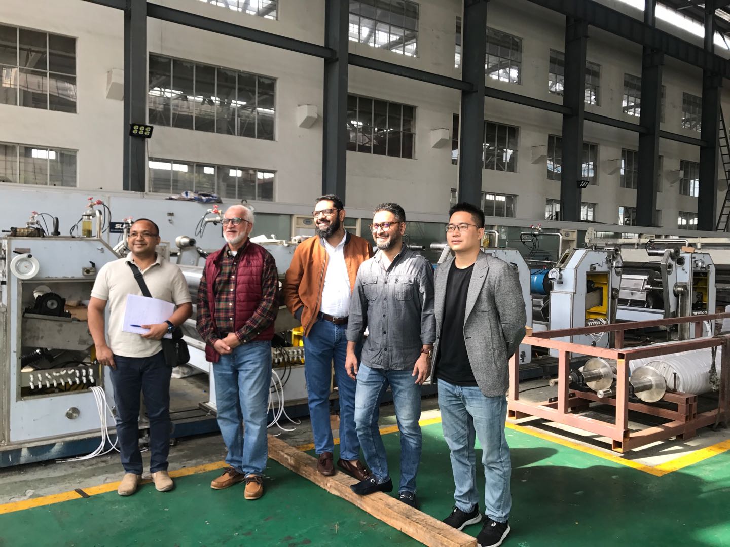 近日,由公司长期合作的广州代理公司牵头,我司迎来一家来自孟加拉的老牌纸厂代表团的考察访问。该纸厂生产主要纸种为双胶纸、书写纸类,此次有意为开发新纸种筹划设备。公司总经理彭宜纯和总工程师张晓磊亲自陪同,参与接待工作。双方在车间和会议室都进行了详细的讲解和沟通,客户对我司的设计能力和加工水平给予了高度的肯定,希望能就涂布机、森林舞会游戏和膜转移施胶机等产品展开进一步合作,尽快促成新项目的落实。