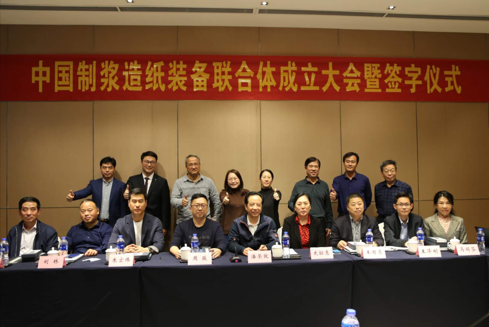 10月31日,由汇中装备主办、我司承办的“中国制浆造纸装备联合体”成立大会在我市绿地铂骊酒店举行。我司作为主要发起单位,与环龙技术织物、陆联力华、晨钟机械、欧佩德昌华、天利机械、太平洋特种网业、成泰造纸技术八家企业共同联合发起组建联合体,公司董事长潘荣敦、总经理彭宜纯出席了成立大会。