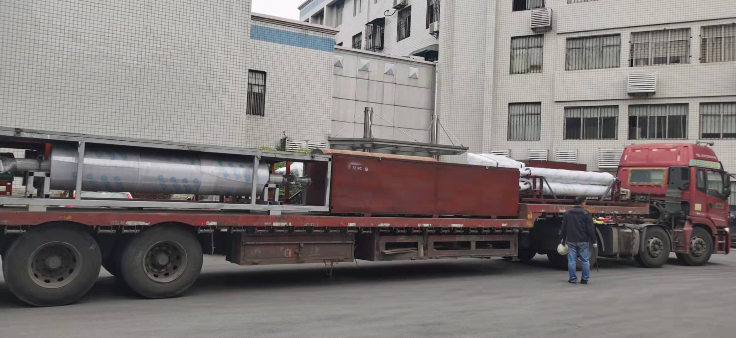 俗话说“金九银十”,忙碌的十月已近尾声,紧锣密鼓的生产依旧在有序的进行着。本月,在车间全体员工加班加点、辛苦努力下,公司出口印度和朝鲜的涂布生产线及压光等配套设备已顺利装车发运。19日以来天气晴好,暖阳高照,满载货物的专用货车陆陆续续从公司总装车间整装出发,拉往港口,等待舱位运往国外用户纸厂。