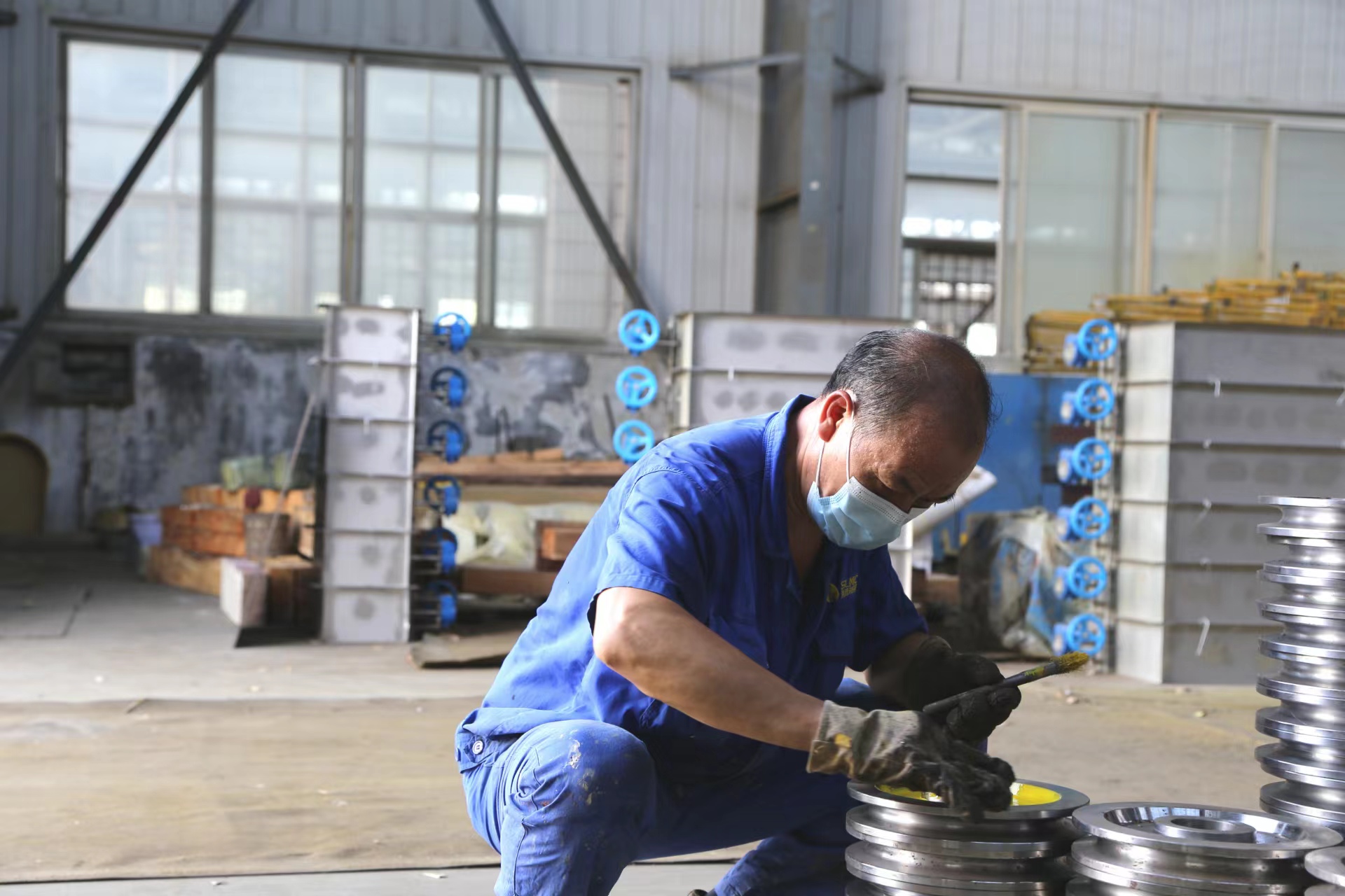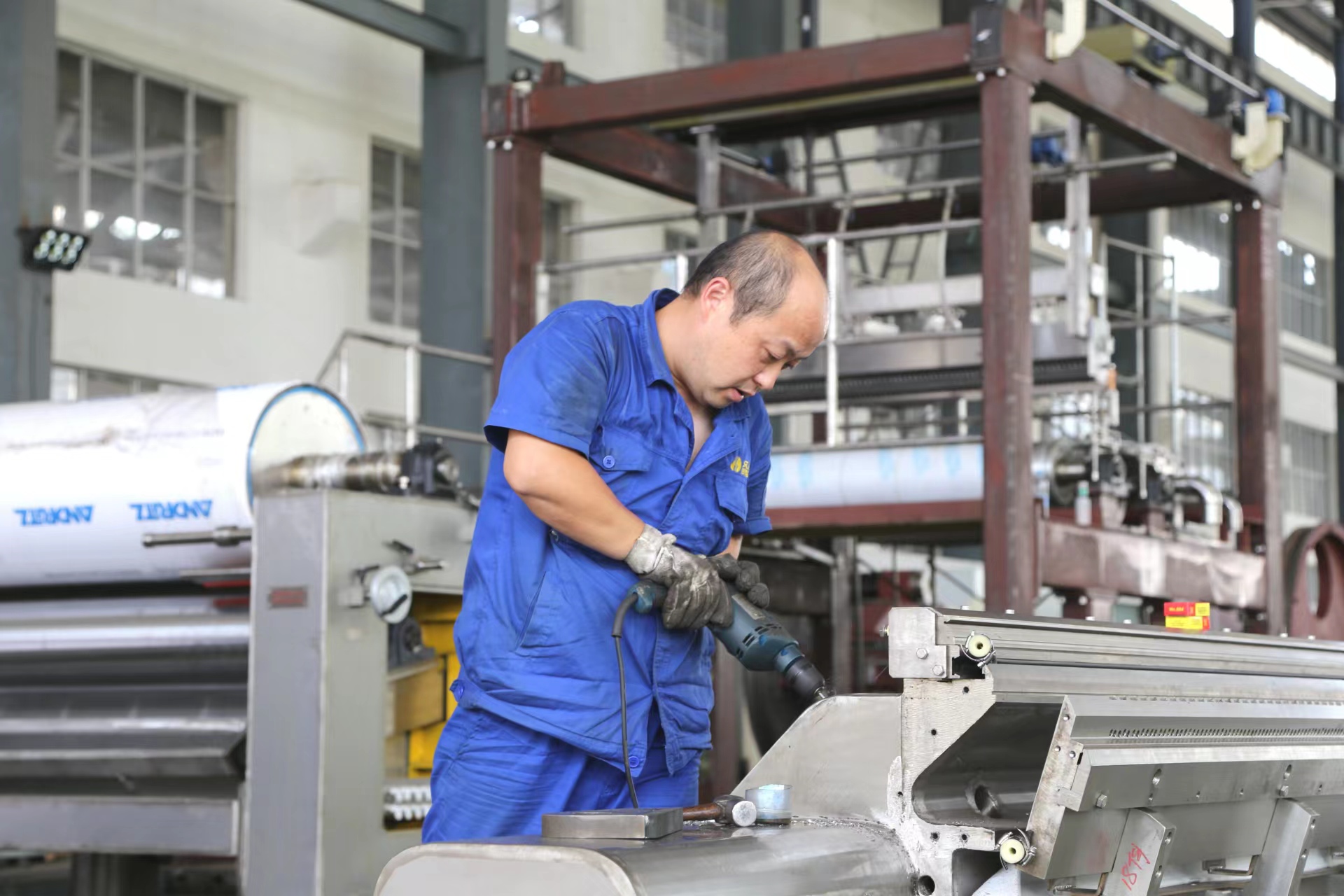 走进公司生产一线,呈现在眼前的是一幕幕火热的劳动场面。只见同事们熟练地操纵着大型机床,车、铣、刨、镗、磨、焊、装配、调试、联动,再油漆晾干包装发货。员工们穿梭在工位、车间、仓库与货车之间,豆大的汗珠挂在脸上,工作服湿了又干,干了又湿,但是没有人懈怠,他们只争分秒,构成了一幅“战酷暑、斗高温、夺高产、保交货”的劳动画卷。
